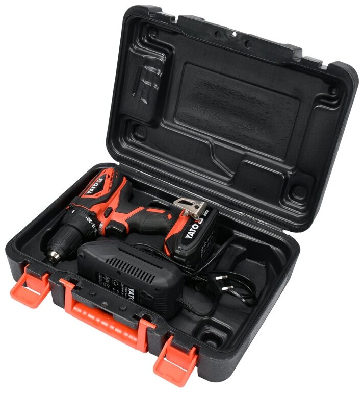 YATO YT-82782 Дрель-шуруповерт аккумуляторная, 1 аккум. 2 Ач, Li-Ion 18 В, з/у, 40 Nm, подсветка, двигатель MABUCHI