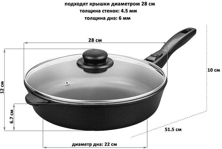 Сковорода глубокая 28 см гармония вкуса "Черный Оникс" С крышкой ф28, с/р, 51,5*29*12 см