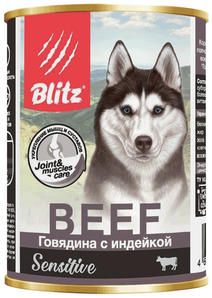 Консервы для собак Blitz / Блиц Sensitive для животных всех пород и возрастов, паштет из говядины с индейкой 400г / корм влажный