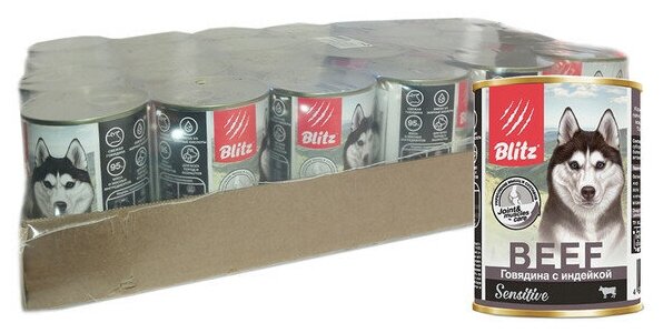 Блитц Консервы для собак Говядина и индейка, 400 г, 24шт