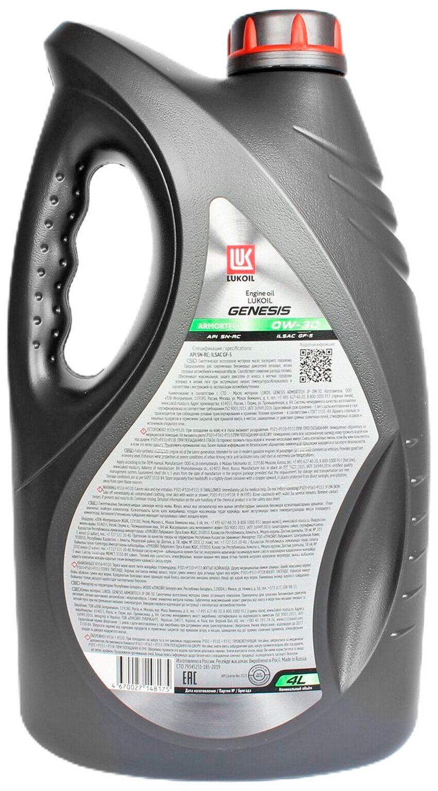 LUKOIL 3173837 LUKOIL GENESIS ARMORTECH JP 0W30 (4L)_масло моторное! синт. \ API SN/SN-RC, ILSAC GF-5 1шт