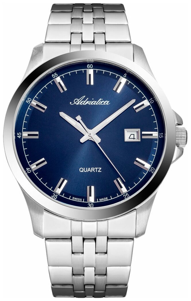 Лучшие цены. мужские швейцарские наручные часы с указателем даты. Мужские кварцевые наручные часы на стальном браслете. Швейцарский часовой бренд «Adriatica» является воплощением современных произведений часового искусства. Объединяя традиции качества и надежности с оригинальностью и элегантностью дизайна, производители часов создают великолепные модели, ориентированные на разные стили для своих покупателей, обеспечивая широкий выбор товара по конкурентоспособной цене. Магазины в вашем городе.