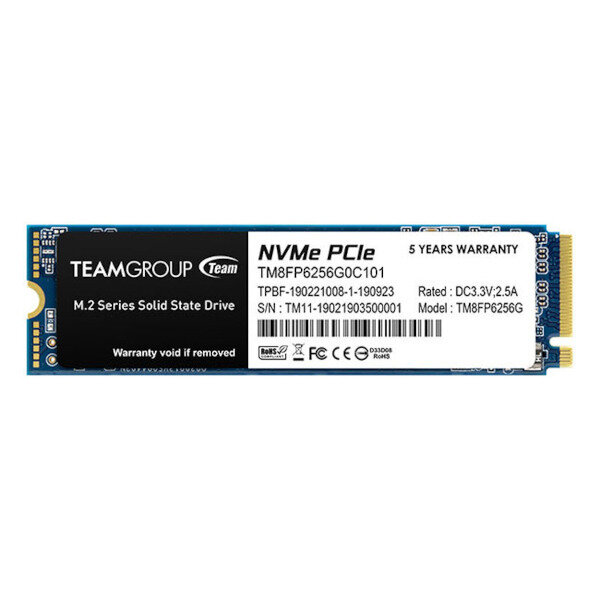 Накопитель SSD Team Group M.2 2280 256GB MP33 Client SSD (TM8FP6256G0C101) PCIe Gen3x4 with NVMe, 1600/1000, IOPS 160/200K, MTBF 1.5M, 3D NAND, 150TBW, 0,32DWPD, RTL (480096)