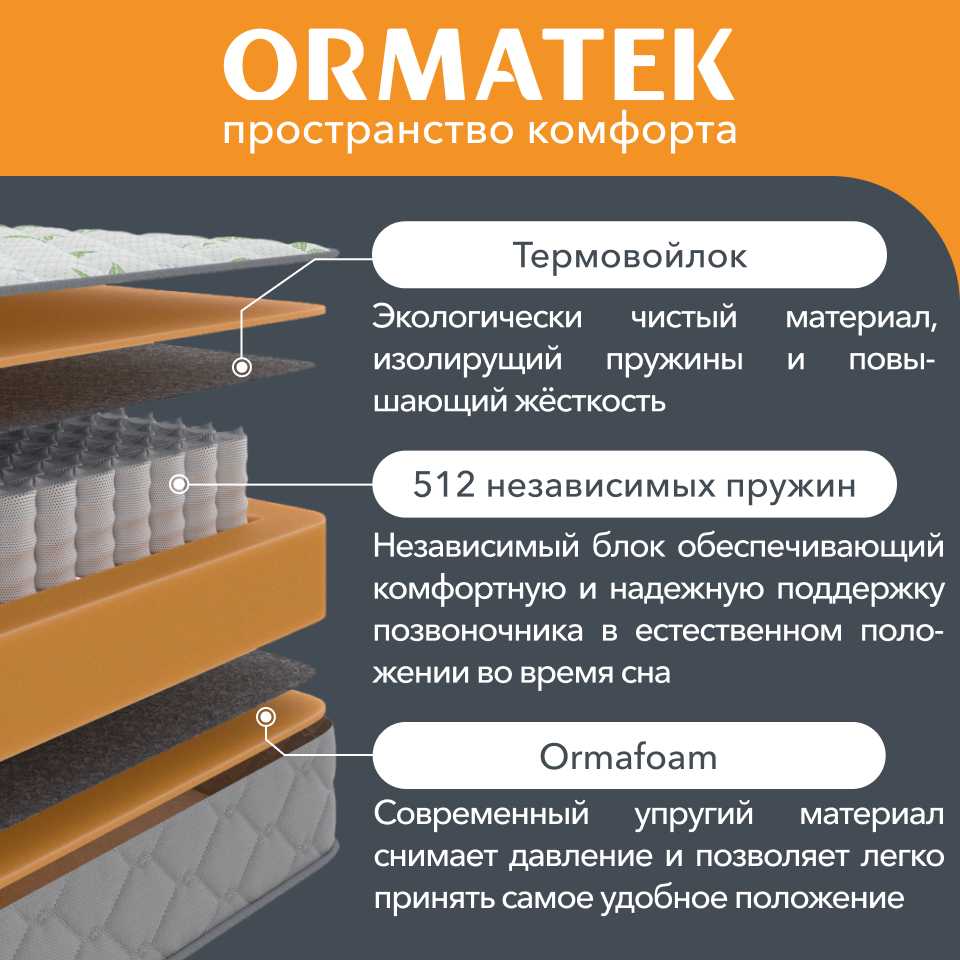Лучшие цены. О модели Матрас средней жесткости на основе блока независимых пружин EVS 500 PRO обеспечивает хорошую поддержку позвоночника и грамотно распределяет нагрузку, приходящуюся на матрас. Каждая из пружин заключена в отдельный тканевый мешочек и работает автономно. Современный гипоаллергенный материал Ormafoam в комфортном слое, изготовлен в соответствии с европейскими стандартами качества пен, он усиливает анатомические свойства матраса, оказывая положительное воздействие на тело спящего, обладает высокой. Магазины в вашем городе.