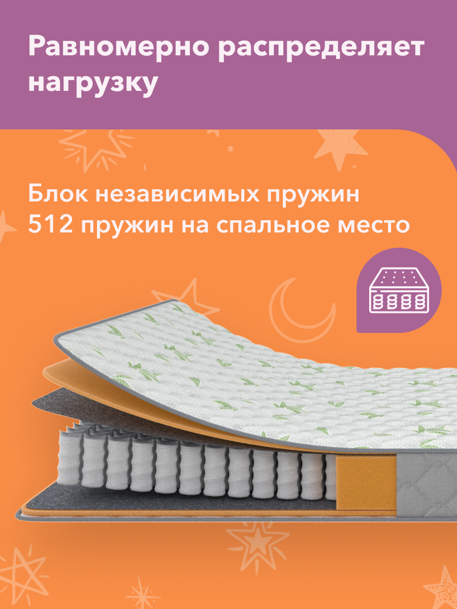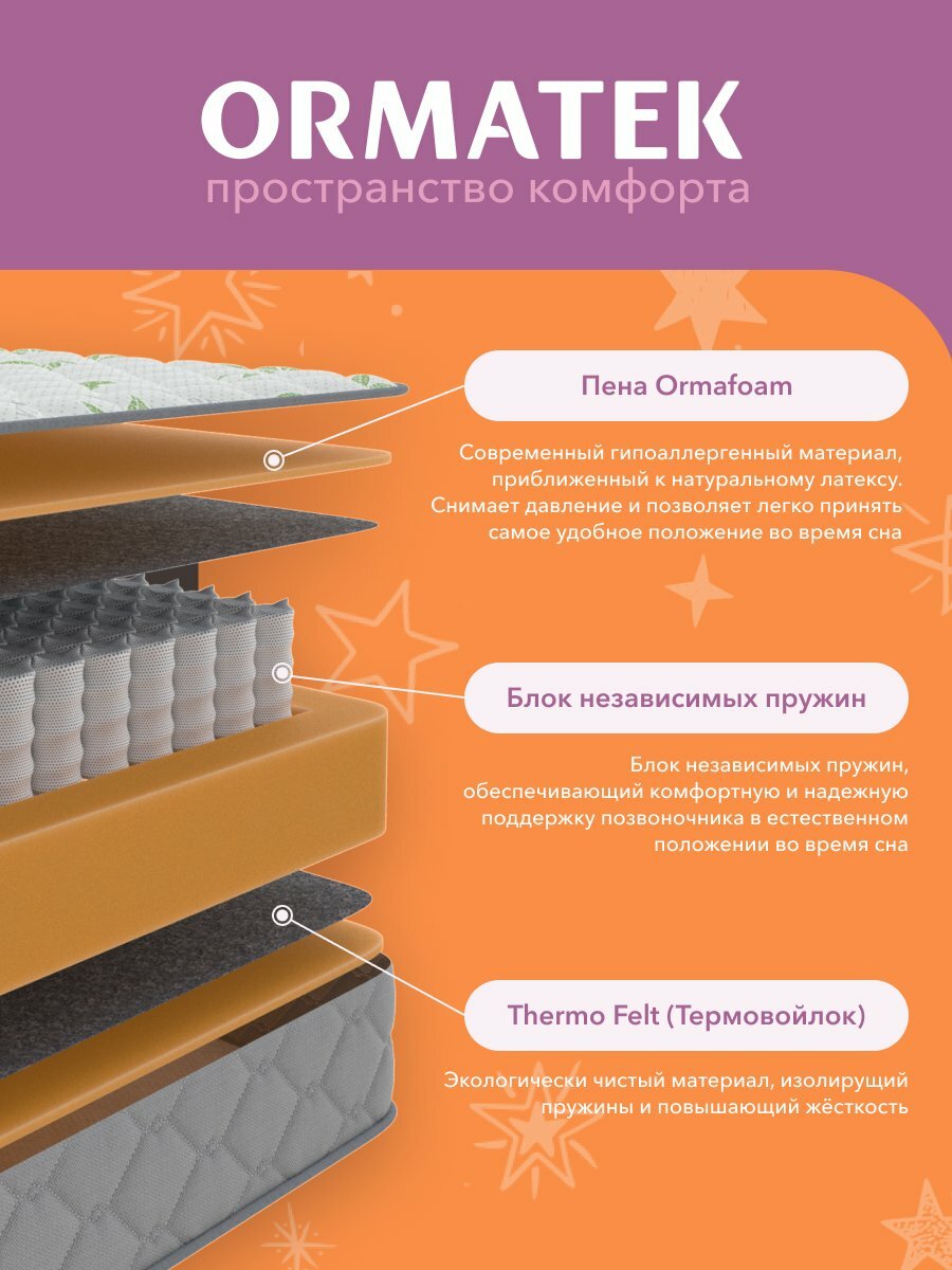 Лучшие цены. О модели Матрас средней жесткости на основе блока независимых пружин EVS 500 PRO обеспечивает хорошую поддержку позвоночника и грамотно распределяет нагрузку, приходящуюся на матрас. Каждая из пружин заключена в отдельный тканевый мешочек и работает автономно. Современный гипоаллергенный материал Ormafoam в комфортном слое, изготовлен в соответствии с европейскими стандартами качества пен, он усиливает анатомические свойства матраса, оказывая положительное воздействие на тело спящего, обладает высокой. Магазины в вашем городе.