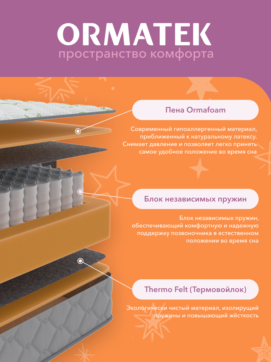 Лучшие цены. О модели Матрас средней жесткости на основе блока независимых пружин EVS 500 PRO обеспечивает хорошую поддержку позвоночника и грамотно распределяет нагрузку, приходящуюся на матрас. Каждая из пружин заключена в отдельный тканевый мешочек и работает автономно. Современный гипоаллергенный материал Ormafoam в комфортном слое, изготовлен в соответствии с европейскими стандартами качества пен, он усиливает анатомические свойства матраса, оказывая положительное воздействие на тело спящего, обладает высокой. Магазины в вашем городе.