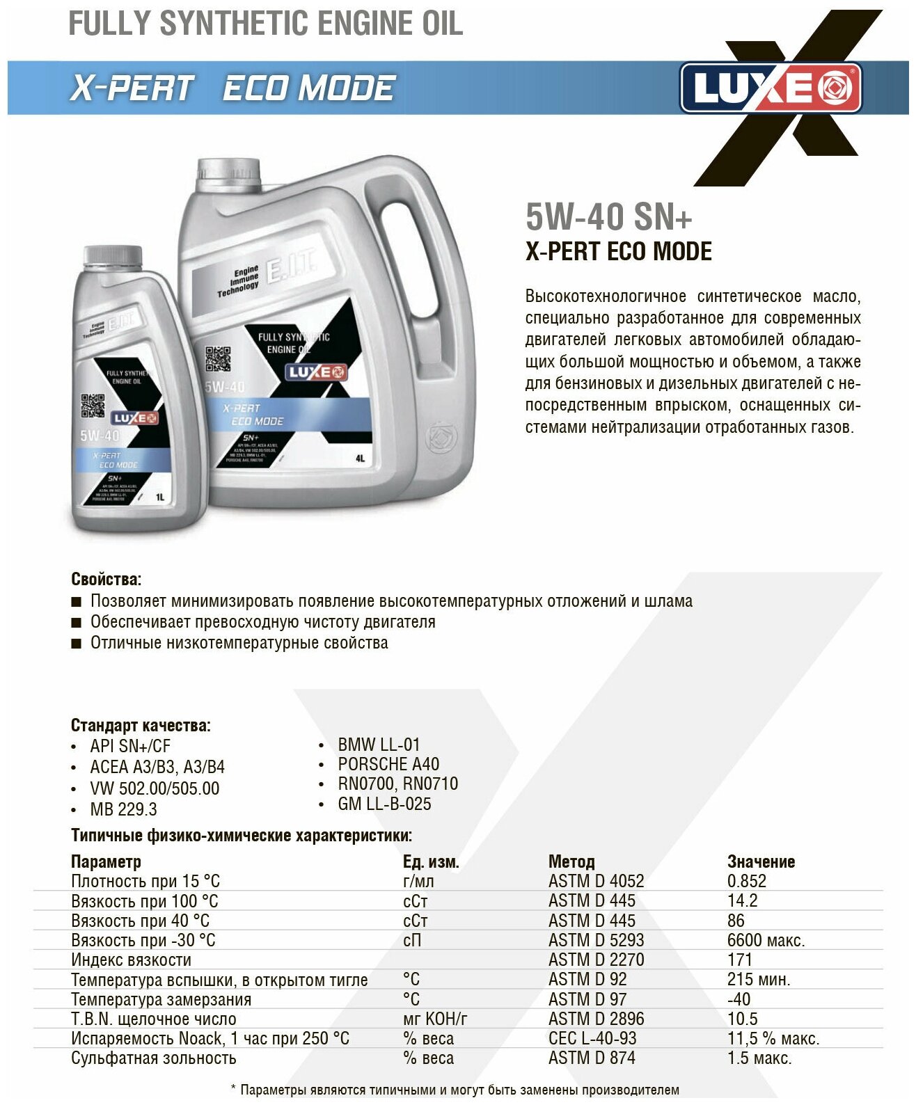 Масло моторное LUXE X-PERT ECO MODE 5W-40 SN/CF A3/B3/B4 синтетическое 4 л LUXE 30371 | цена за 1 шт