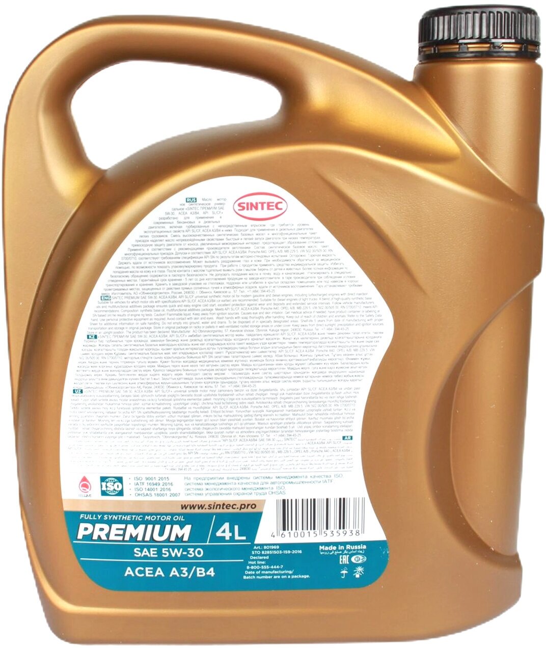 Лучшие цены. Синтетическое моторное масло «SINTEC Premium SAE 5W-30 ACEA A3/B4» производится на основе смеси высококачественных синтетических базовых масел и высокоэффективного многофункционального пакета присадок. Идеально подходит для обслуживания большинства современных бензиновых и дизельных двигателей европейских и американских автопроизводителей, где требуется применение масел уровня ACEA A3/B4, API SL. Рекомендуется для бензиновых двигателей как с турбонаддувом, так и без него. Магазины в вашем городе.