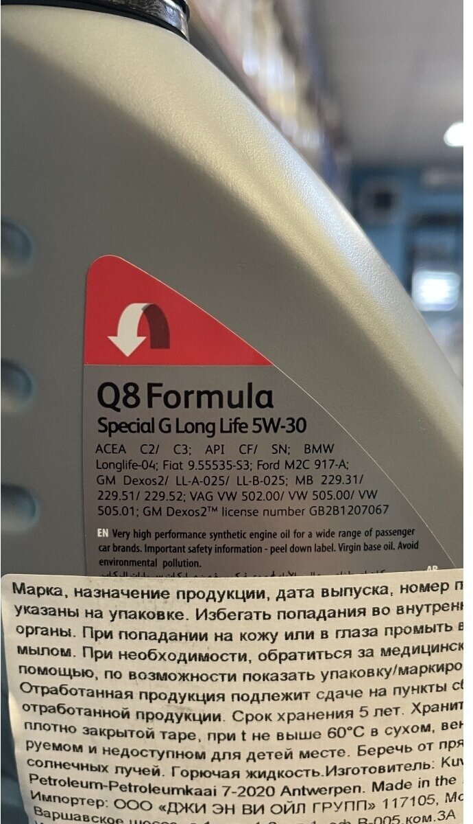 Масло Q8 F Special G Long Life 5W-30 4л 5 178 ₽ Подробнее