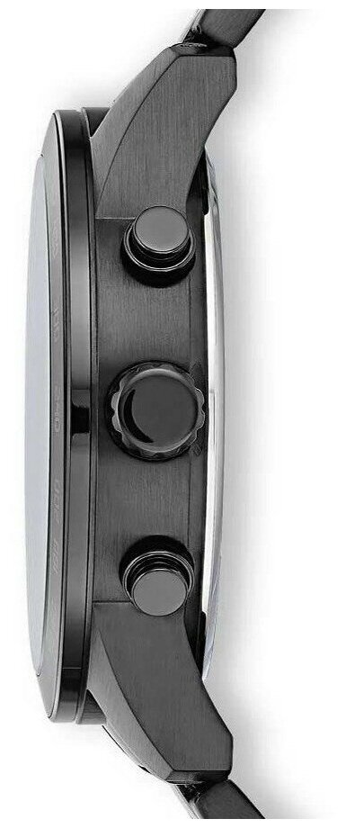Лучшие цены. Мужской кварцевый хронограф. Калибр механизма 0520. Центральные часовая и минутная стрелки, секундная стрелка вынесена на малый циферблат. Апертура даты между 4 и 5 часами. Секундомер. Тахиметр. 12/24х часовой формат времени. Черный циферблат. Круглый корпус выполнен из полированной нержавеющей стали с черным PVD покрытием. Диаметр корпуса составляет 44 мм. Стальной браслет с покрытием шириной 22 мм, раскладывающаяся застежка. Прочное минеральное стекло устойчивое к мелким механическим повреждениям. Магазины в вашем городе.