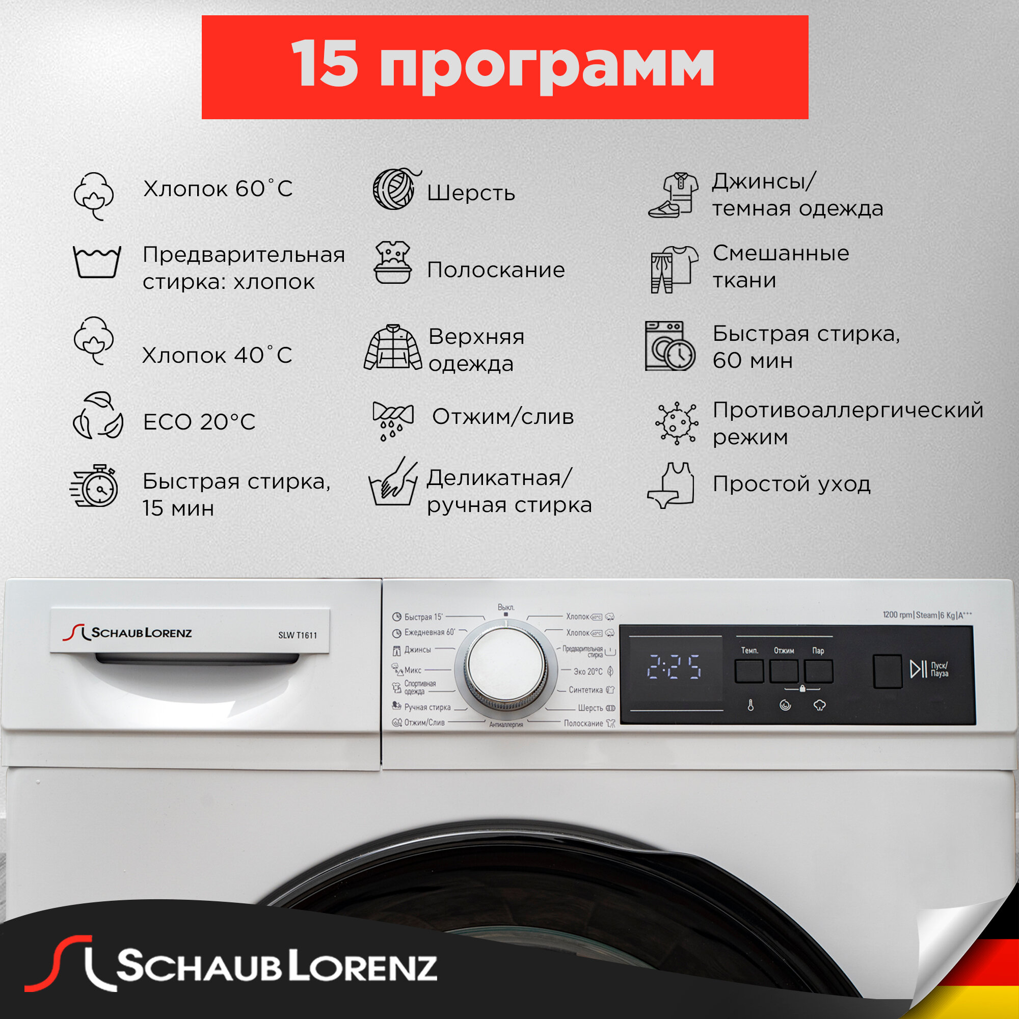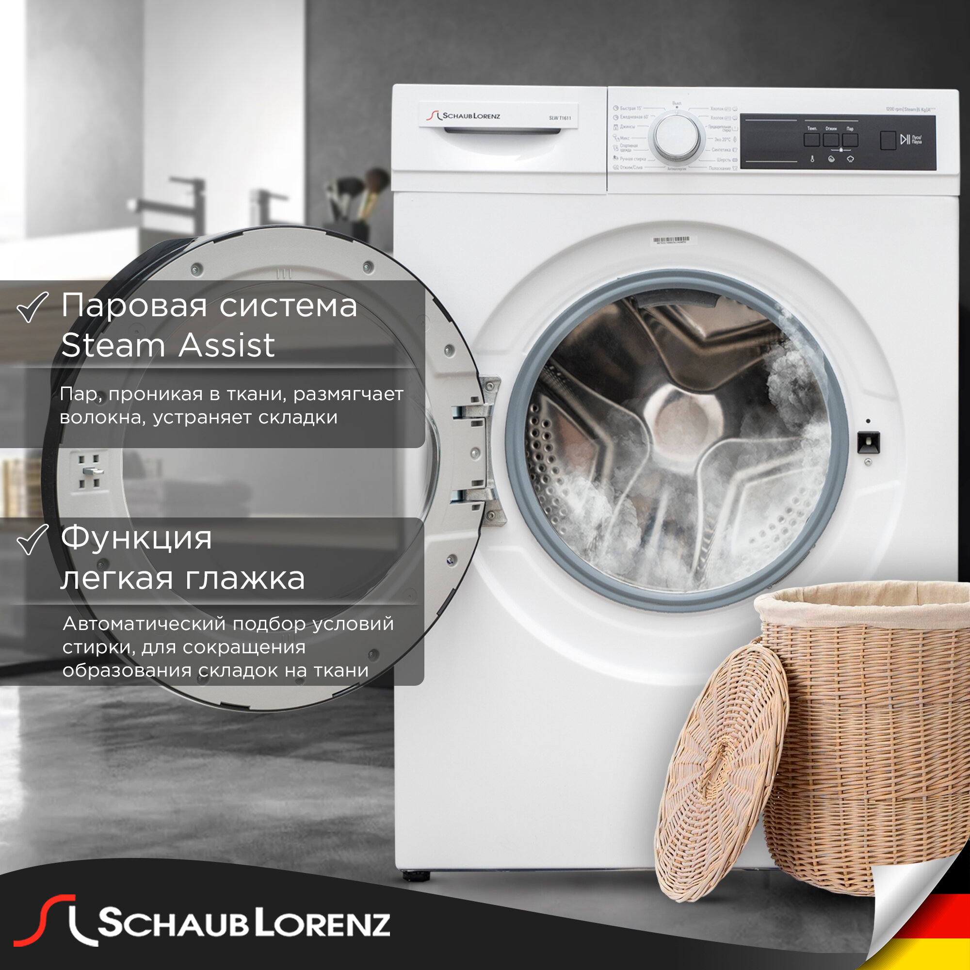 Стиральные машины Стиральная машина Schaub Lorenz SLW T1611 функция пара, экономная половинная загрузка