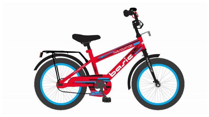 Лучшие цены. Детский велосипед NAVIGATOR BASIC, колеса 20", стальная рама, стальные обода, ножной тормоз, защитная накладка на руле и выносе, полноразмерные металлические крылья, багажник, звонок, мягкое сидение, мягкие резиновые грипсы, "P"-образная защита цепи, страховочные колеса. Магазины в вашем городе.