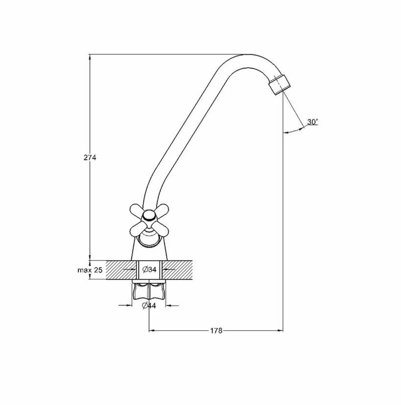 смеситель G.Lauf для кух. мойки с пов. изливом (Lt), кер. (1/2) 180°, гайка (корона) QSL4-A827