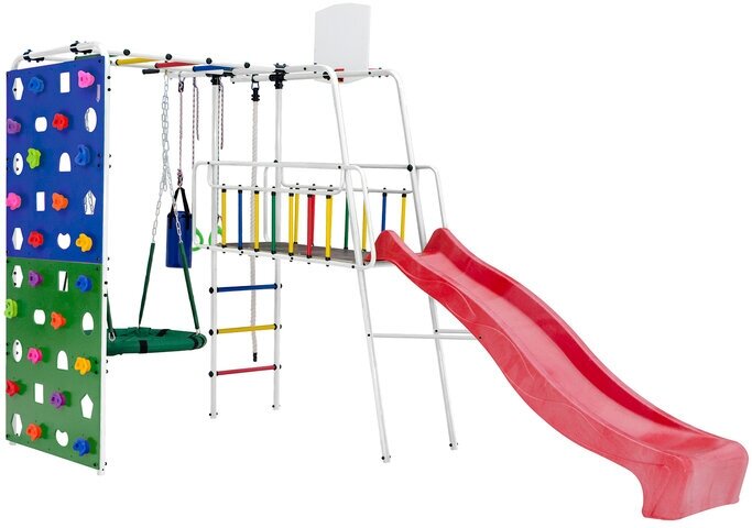 Игровая спортивная площадка ДСК "Формула здоровья" "Street 3" белый радуга(горка красная, скалодром-сине-зеленый)
