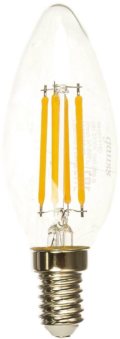 Лампа LED Candle E14 5W 2700К Gauss Filament 103801105