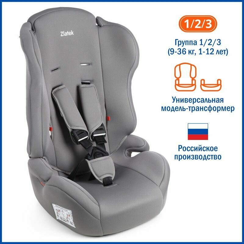 Удерживающее устройство для детей ZLATEK ZL513, basic, серый Atlantic, гр. I/II/III, 9-36 кг, 1-12 лет