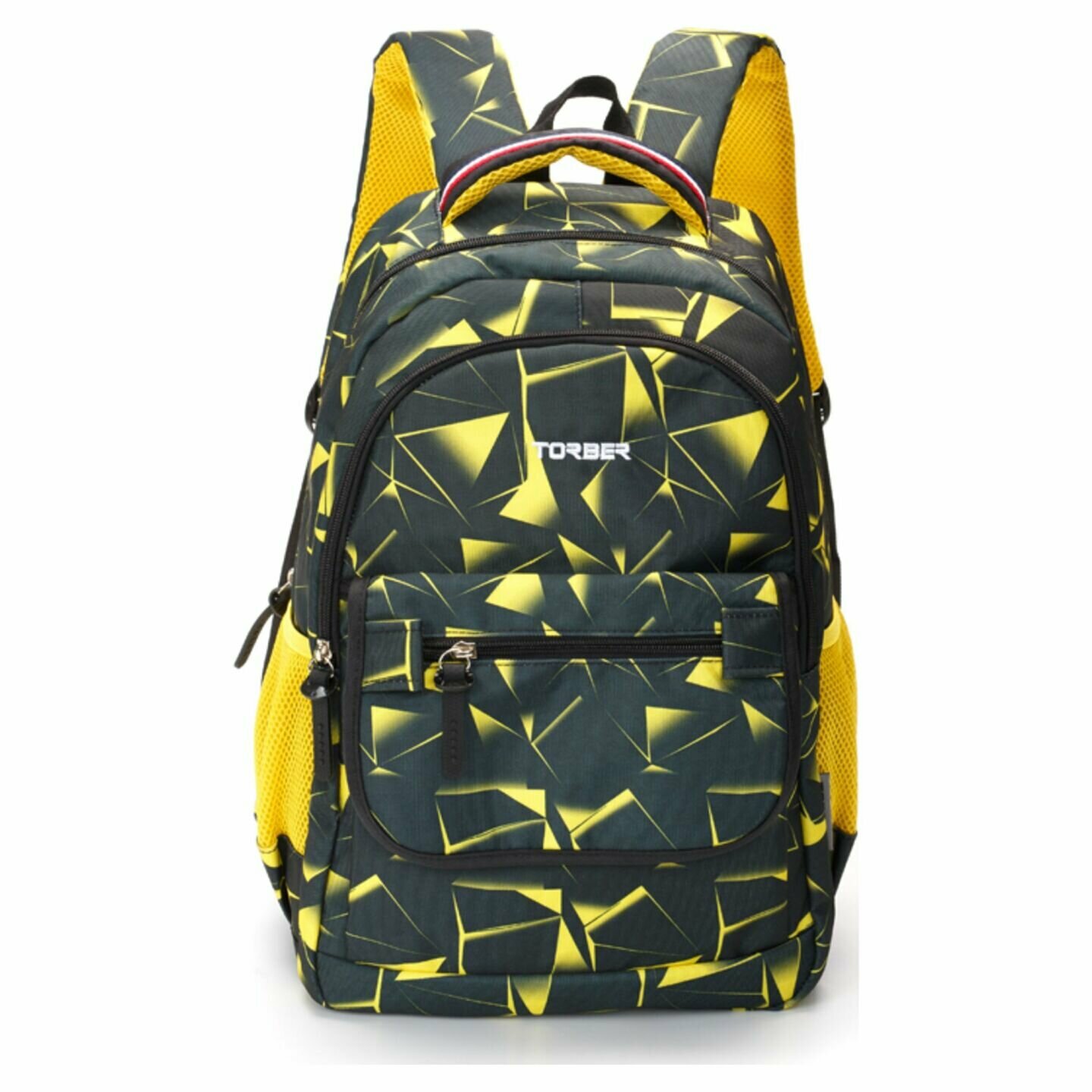 Рюкзак TORBER CLASS X, черно-желтый с орнаментом, полиэстер, 45 x 30 x 18 см