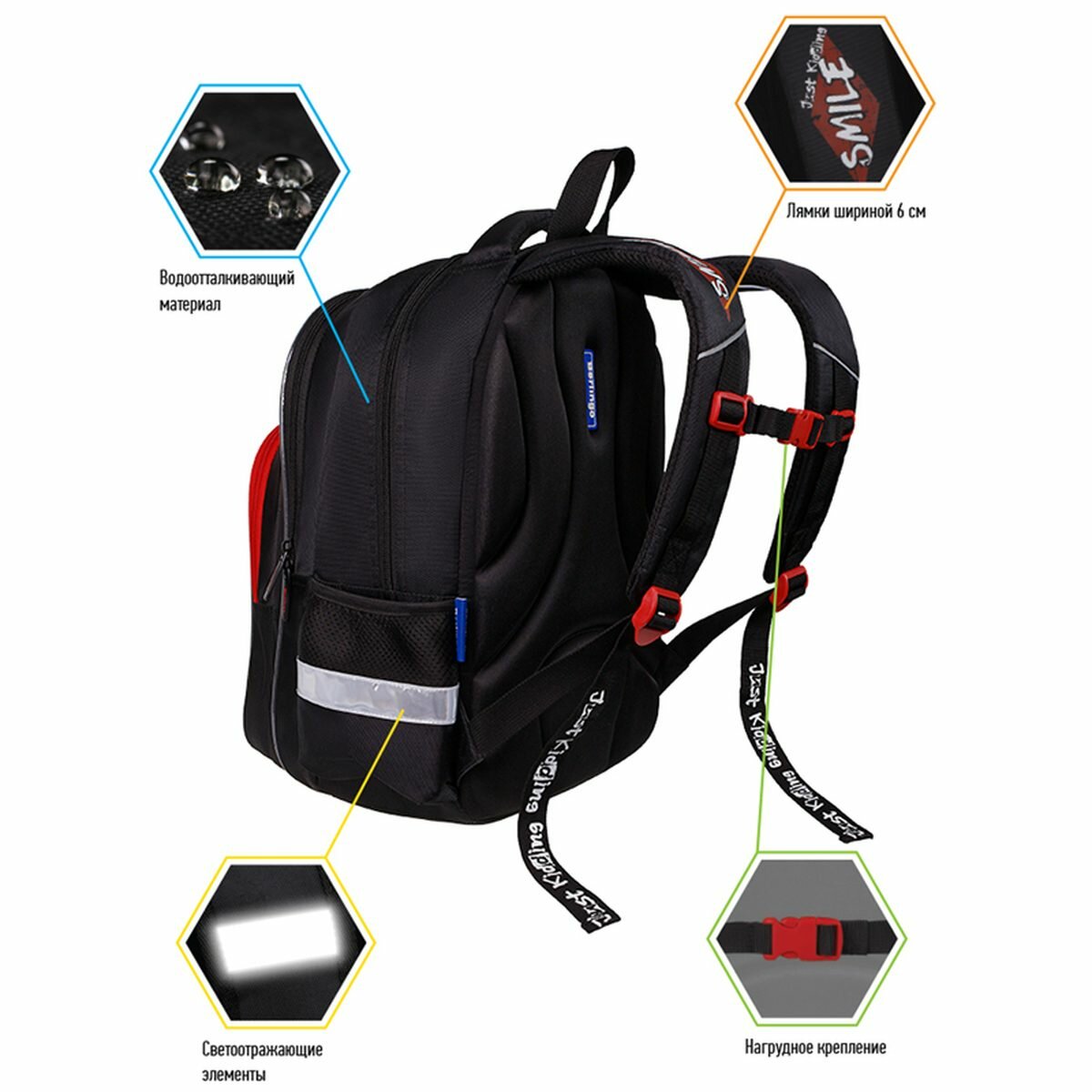 | Конструкция | грудная стяжка, мягкие лямки, S-образные лямки, светоотражатель |
