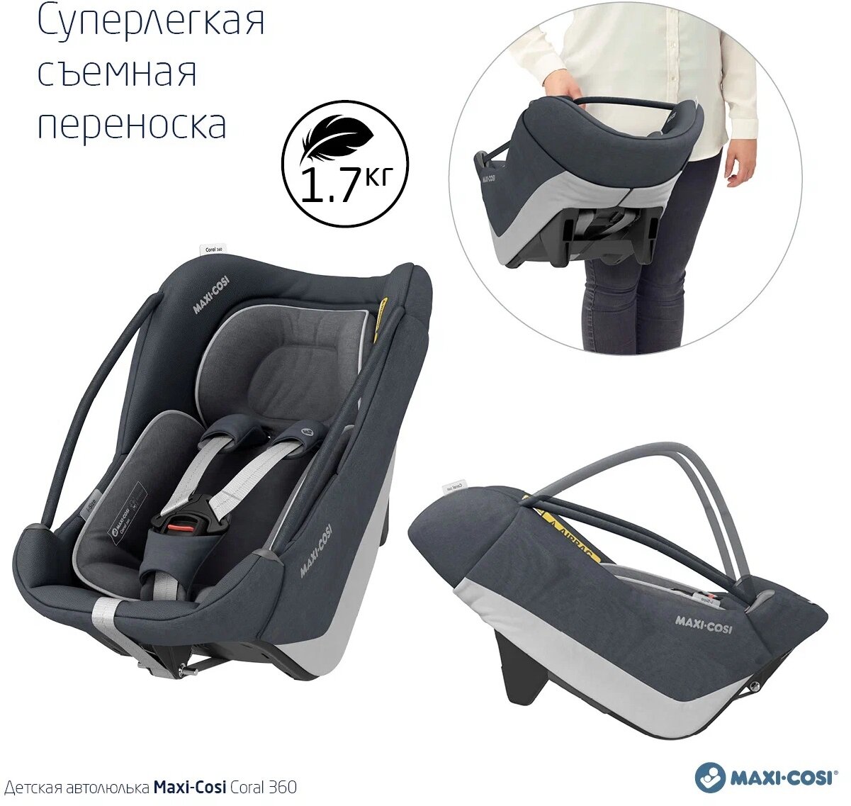Лучшие цены. Мы разработали первое модульное детское автокресло с поворотом на 360°, предназначенное для сверхлегкой переноски. Инновационная модульная конструкция Maxi-Cosi Coral 360 сочетает в себе высочайшие стандарты безопасности с усовершенствованным и легко снимаемым легким мягким носителем. Maxi-Cosi Coral 360 совместим с базой FamilyFix 360 (продается отдельно), что делает его идеальным инновационным решением для вашего новорожденного. Магазины в вашем городе.