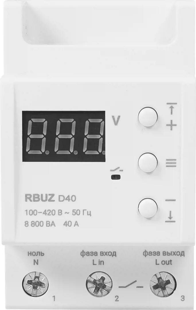 Лучшие цены. Реле напряжения RBUZ D-40 разработано преимущественно с целью защиты всего оборудования от возможных колебаний электроэнергии в сети. В момент нарастания аварийного процесса реле напряжения RBUZ D-40 обеспечивает автоматическое отключение. Используется преимущественно в однофазных сетях, где показатель переменного тока равен 230 В. Магазины в вашем городе.