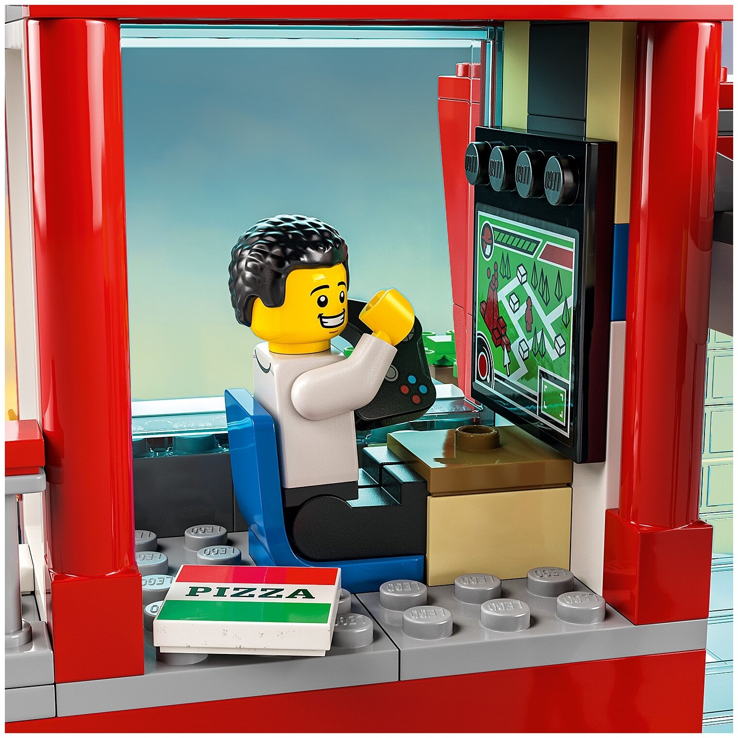 Лучшие цены. В трехэтажном здании пожарной части LEGO® City (60320) есть диспетчерская, комнаты пожарных, стойка администратора и гараж, а еще в наборе есть стреляющие различными водяными элементами вертолет и пожарная машина. Просто добавьте минифигурки пожарных, среди которых есть два персонажа сериала «ЛЕГО Сити», и фигурки кошки и собаки, чтобы было веселее! Входящая в набор дорожная плита LEGO позволяет расширить модель, добавив другие наборы. Магазины в вашем городе.