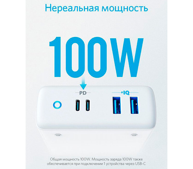 Лучшие цены. Anker PowerPort Atom IV обеспечивает зарядную мощность в 100 Вт, достаточную для одновременной зарядки 2 ноутбуков и 2 смартфонов. Высокоскоростная зарядка: экономьте до 1 часа с помощью USB-C Power Delivery и технологии Anker PowerIQ для портов USB-A. Интеллектуальное распределение мощности: 100 Вт зарядной мощности может распределяться между несколькими устройствами или выдаваться на одно – например, для быстрой зарядки ноутбуков. Магазины в вашем городе.