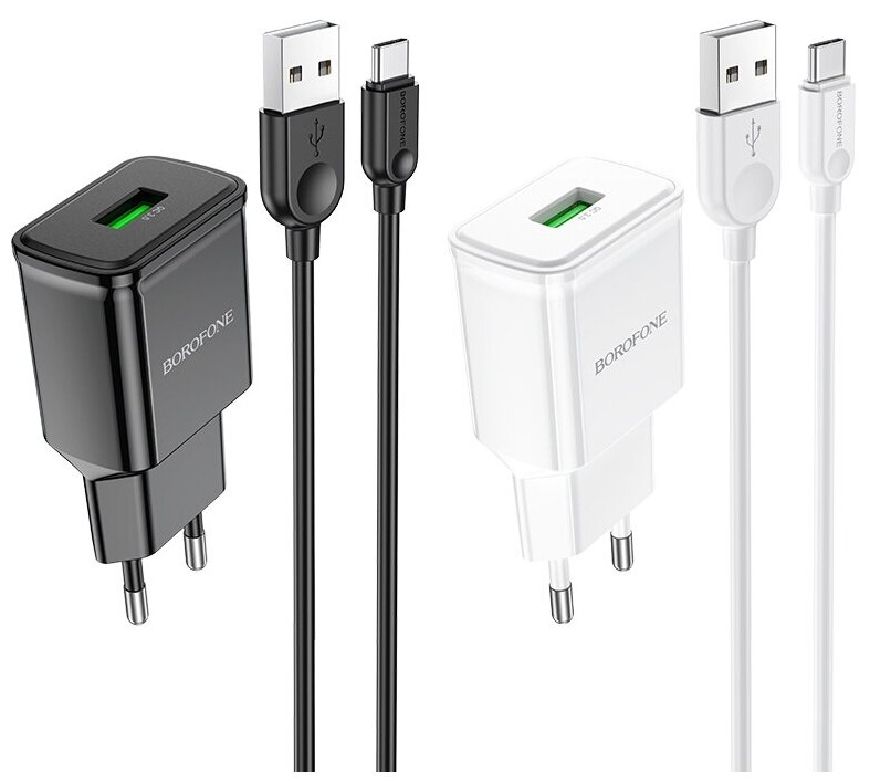 Зарядки для гаджетов СЗУ 1USB 3.0A QC3.0 быстрая зарядка для Type-C Borofone BA59A 1м White