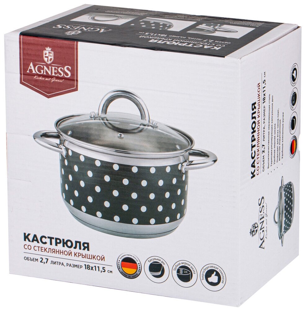 Кастрюля Agness горошек, 2.7 л, диаметр 18 см