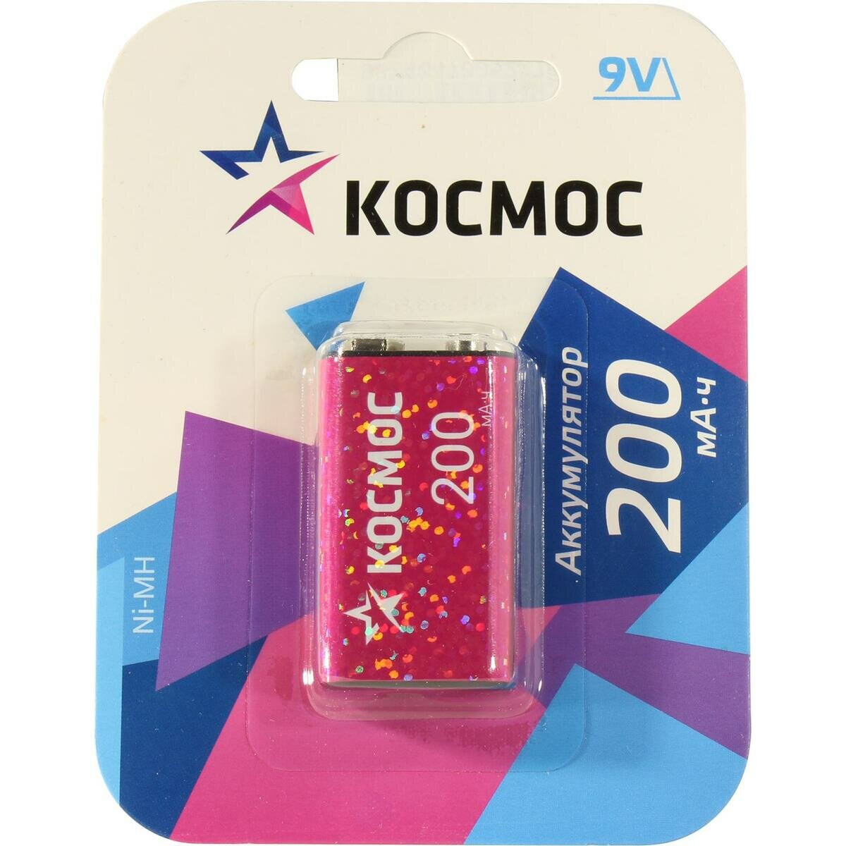 Аккумуляторная батарейка Аккумулятор 6F22 200мА.ч 1BL (блист.1шт) космос KOCNI-MH6F22(200mAh)
