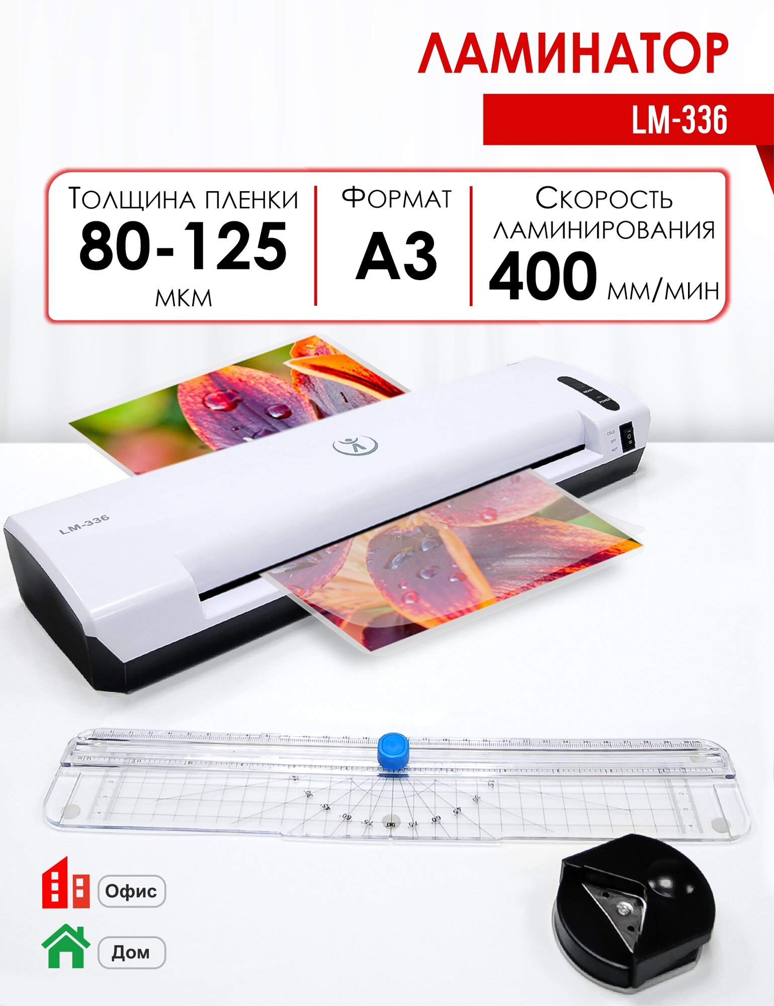 Ламинаторы Ламинатор пакетный LM-336, формат А3, офисный, толщина пленки 80-125 мкм