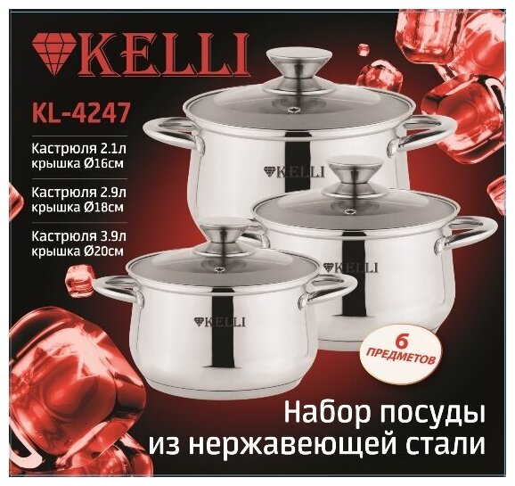 Набор кастрюль Kelli KL-4247 6 пр. серебристый