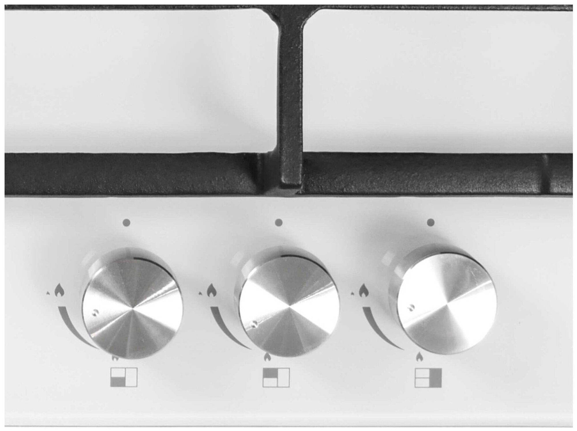 Лучшие цены. Общие характеристики Тип панели: газовая; Установка: независимая; Размеры для встраивания (ШхГ): 42 x 49 см; Габариты (ШхГ): 45 x 51 см; Конфорки Всего конфорок: 3; Газовых конфорок: 3; Конфорок газовых "Тройная корона": 1; Экспресс-конфорок: 1; Материал панели: закаленное стекло; Панель управления Электроподжиг: есть, автоматический; Переключатели: поворотные; Расположение панели: спереди; Особенности Цвет: панели конфорок – белый; Газ-контроль конфорок: есть; Чугунные решетки: есть; Тип Газовая. Магазины в вашем городе.