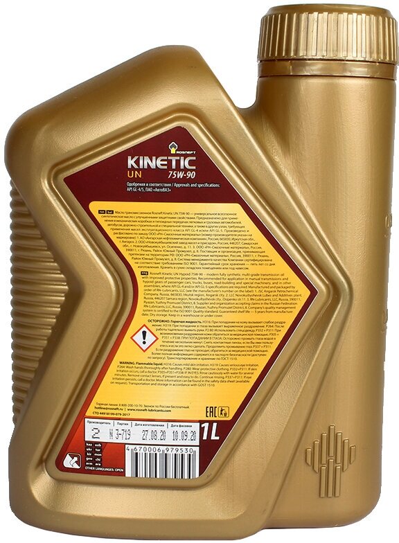 Масло Роснефть Kinetic UN 75W-90 Канистра 1 л