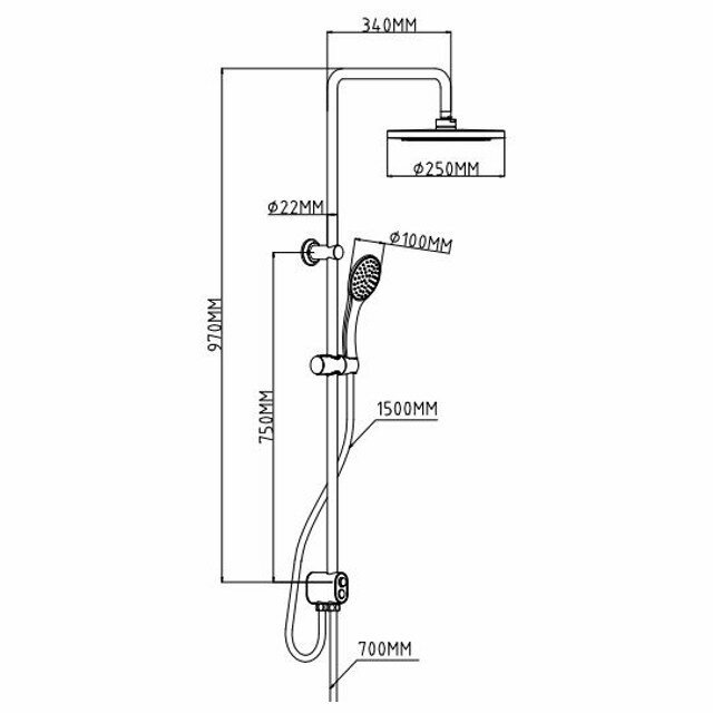 | Комплектация | ручной душ (душевая лейка) / верхний душ (тропический) / смеситель / стойка / штанга / душевой шланг / крепление ручного душа |