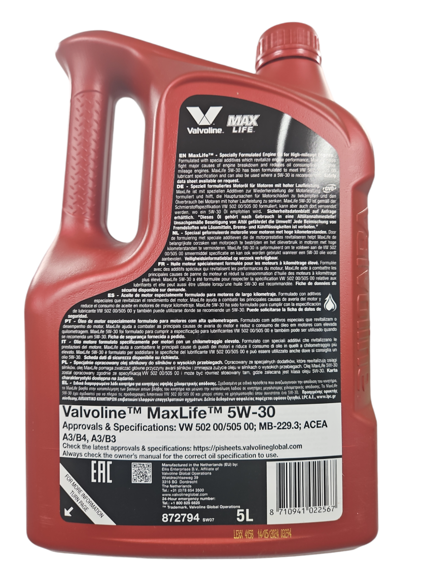 VALVOLINE 872794 Valvoline MAXLIFE 5W-30/масо моторное/ 5L Valvoline MAXLIFE 5W-30/масо моторное/ 5L