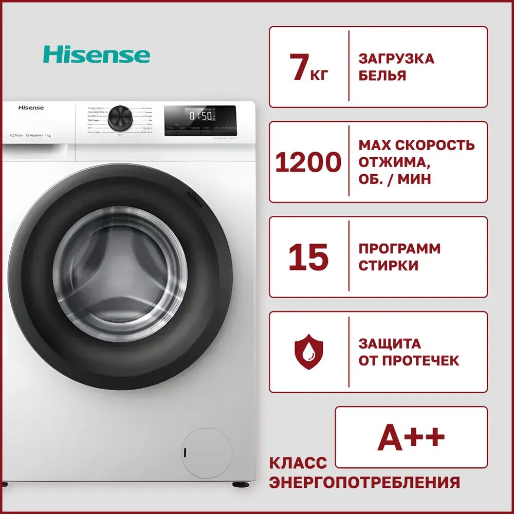 С/м фронтальная HISENSE WFQP7012VM белый/черный (пар, инвертор)