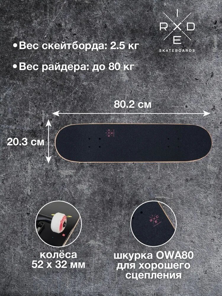 Лучшие цены. Космические межпространственные путешествия станут реальностью вместе с новым скейтбордом RIDEX Pluto, который приведёт тебя и твоих друзей по скейтпарку в полный восторг!\nМаневренный и накатистый трюковой скейтборд дополнен подшипникам ABEC-7 Chrome и колесам 52 х 32 мм. Крепкая дека из 8 слоёв клёна увеличивает срок жизни доски и способна выдержать вес до 80 кг. Магазины в вашем городе.