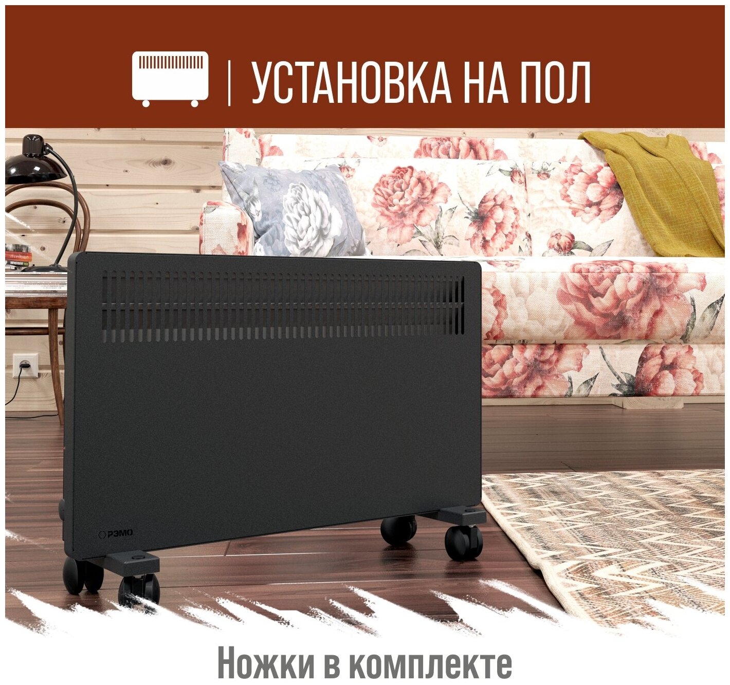 Обогреватель РЭМО СБ-1500.2 B, конвекторный, настенный/напольный, 1500 Вт, 20 м², чёрный