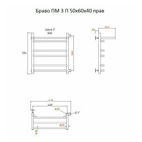 Полотенцесушители Полотенцесушитель Браво ПМ 3 П 50*60*40 (ЛЦ4) правый