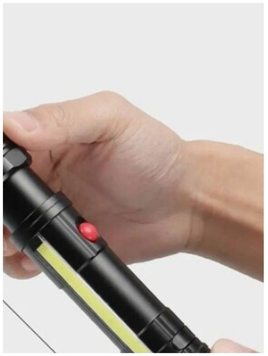 Фонарики Функциональный ручной фонарь из серии "Double" на современном светодиоде XML-T6 c боковой COB панелью и магнитом Огонь H-685/YYC-T6-26