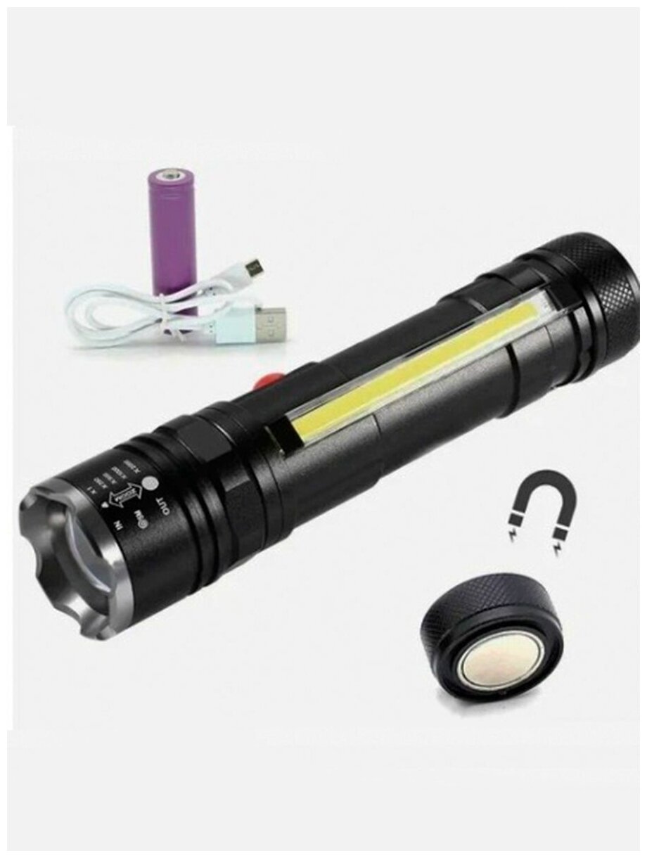 Лучшие цены. Ручной аккумуляторный фонарь для туризма, отдыха и работы Огонь H-685/YYC-T6-26 на современном светодиоде XML-T6 c дополнительной боковой COB панелью и возможностью зарядки от любого USB блока питания или от пауэрбанка. Устройство работает от одного Li-ion аккумулятора типоразмера 18650. Его зарядка осуществляется через встроенный в корпус фонаря micro USB разъём. Кроме этого, возможна работа от 3-х "мизинчиковых" батареек размера R03/ААА. Магазины в вашем городе.