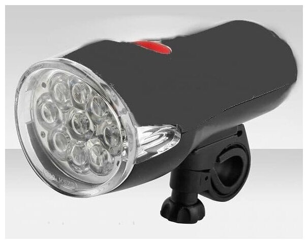 Лучшие цены. Фонарь JY-154A передний на руль, 9 светодиодов, 4 режима работы, чёрный верх, чёрный низ, под батарейки ААх5. Магазины в вашем городе.