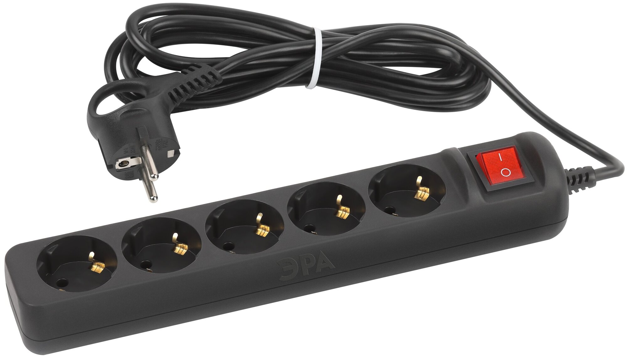 Эра Б0057731 Удлинитель электрический UX-5es-3m-B с заземлением с выключателем 5 розеток 3м ПВС 3x0,75мм2 черный
