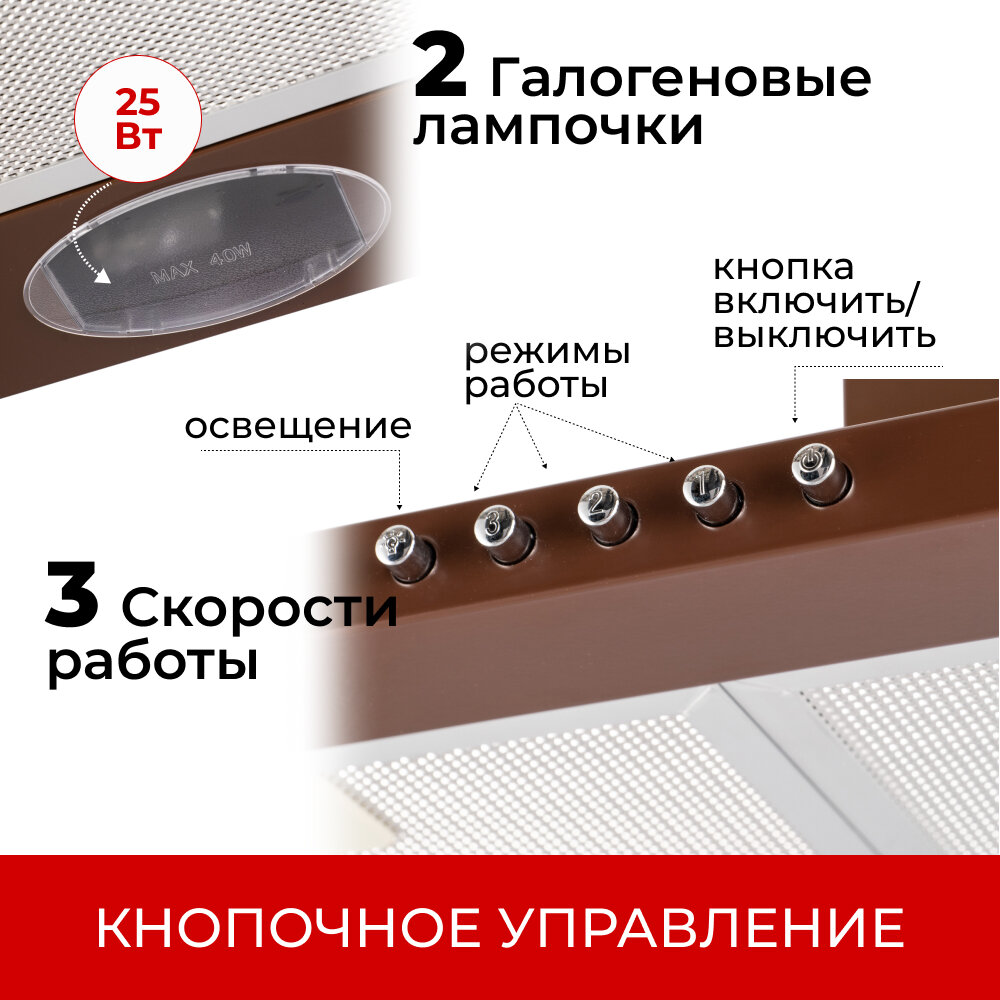 Вытяжка MACBI DMV 50 brown / коричневый / настенная / кнопочное управление / 3 скорости / 50 см.