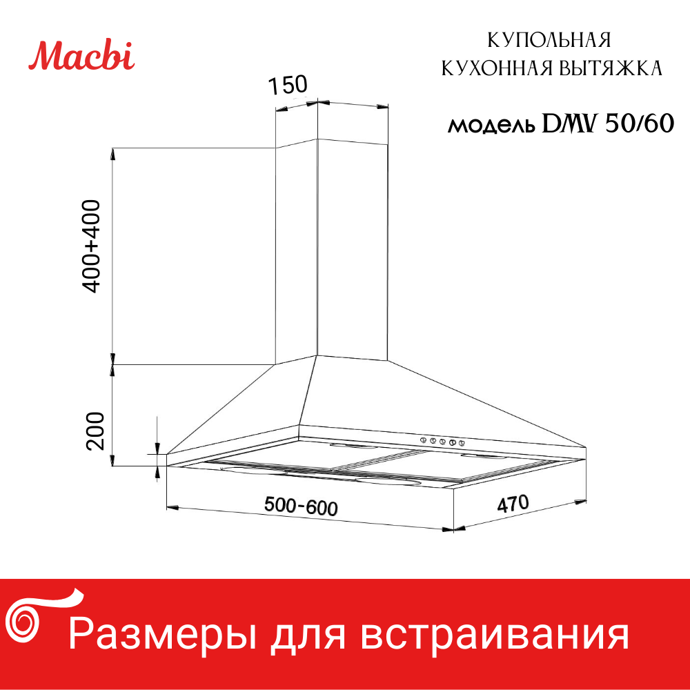 Кухонная вытяжка MACBI DMV 50 650 м/3 белая, купольная 9 990 ₽ Подробнее