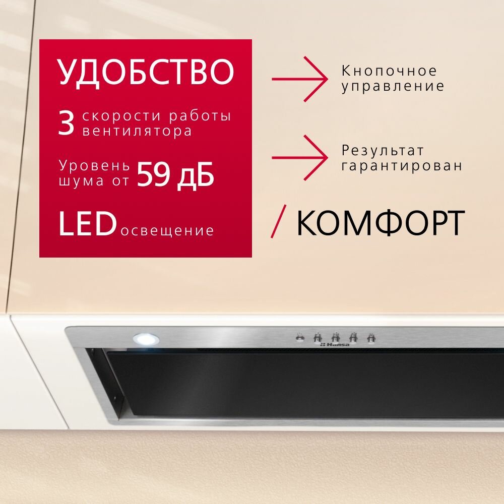 Вытяжка кухонная встраиваемая в подвесной шкаф Hansa / Ханса OMP6242BIH металл серый 2 режима 3 скорости 59Дб 500м3/ч / вытяжная система вентиляции