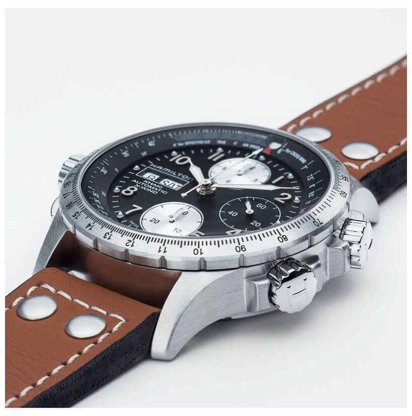 Лучшие цены. Модель Khaki X-Wind - первые в мире часы с устройством для точного расчета угла сноса, которое позволяет пилотам учитывать во время полета боковой ветер. Но и для сухопутных обладателей этих часов они являются надежным «вторым пилотом». Массивный и одновременно стильный, этот новый хронограф привлекает внимание с первого взгляда, в то время как его точность и функциональность гарантируют безопасный полет. Магазины в вашем городе.
