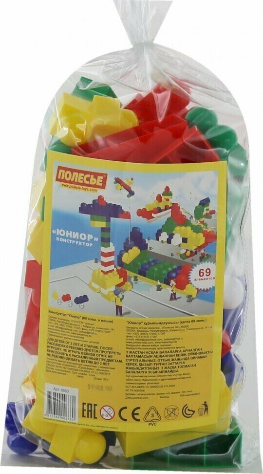 Лучшие цены. Играть конструктором «Юниор» могут даже малыши. И именно для них создана эта серия конструкторов компании «Полесье». Элементы конструктора имеют объёмную форму и сглаженные углы, чтобы не допустить травмирования ребёнка. Игра с конструктором способствует развитию у маленького строителя мелкой моторики, он может фантазировать, создавать фигурки и башни. В комплекте 93 элемента. Магазины в вашем городе.