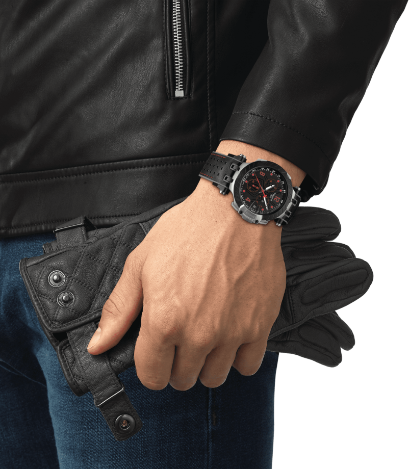 Лучшие цены. Мужские наручные часы из лимитированной коллекции T-Race Limited Edition (всего 3993 экземпляра) выпущены в честь мотогонщика Марка Маркеса - семикратного чемпиона. Задняя крышка имеет гравировку со знаком "93" - под этим номером выступает спортсмен. Дизайнеры расставили по циферблату и ремешку из прочного каучука красные акценты. Безель стилизован под шину мотоцикла. В комплектацию входит оригинальная коробка в виде шлема. Кварцевый механизм ETA G10.212 отвечает за высокую точность хода. Магазины в вашем городе.
