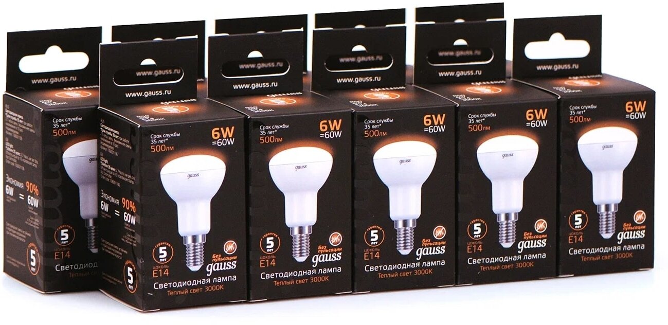 Упаковка ламп LED GAUSS E14, рефлектор, 6Вт, R50, 10 шт. [106001106]